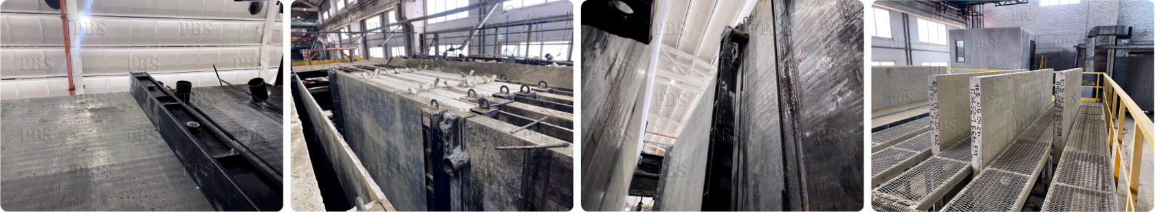 - Стационарный опорный борт с уплотнителем. Его ключевая функция — предотвращение утечки цементного молочка из формующей кассеты. Это обеспечивает безупречную геометрию и идеально гладкие торцы готовых железобетонных изделий. Жестко закрепленная конструкция гарантирует неизменность положения и стабильность размеров получаемых панелей.
